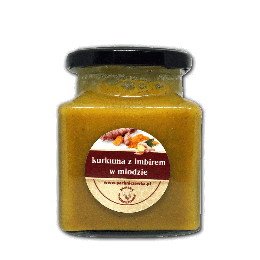 Jest mniej ostra niż imbir w miodzie. Wyprodukowany w ekologicznej pasiece "Pachniczówka" z Grębkowa.